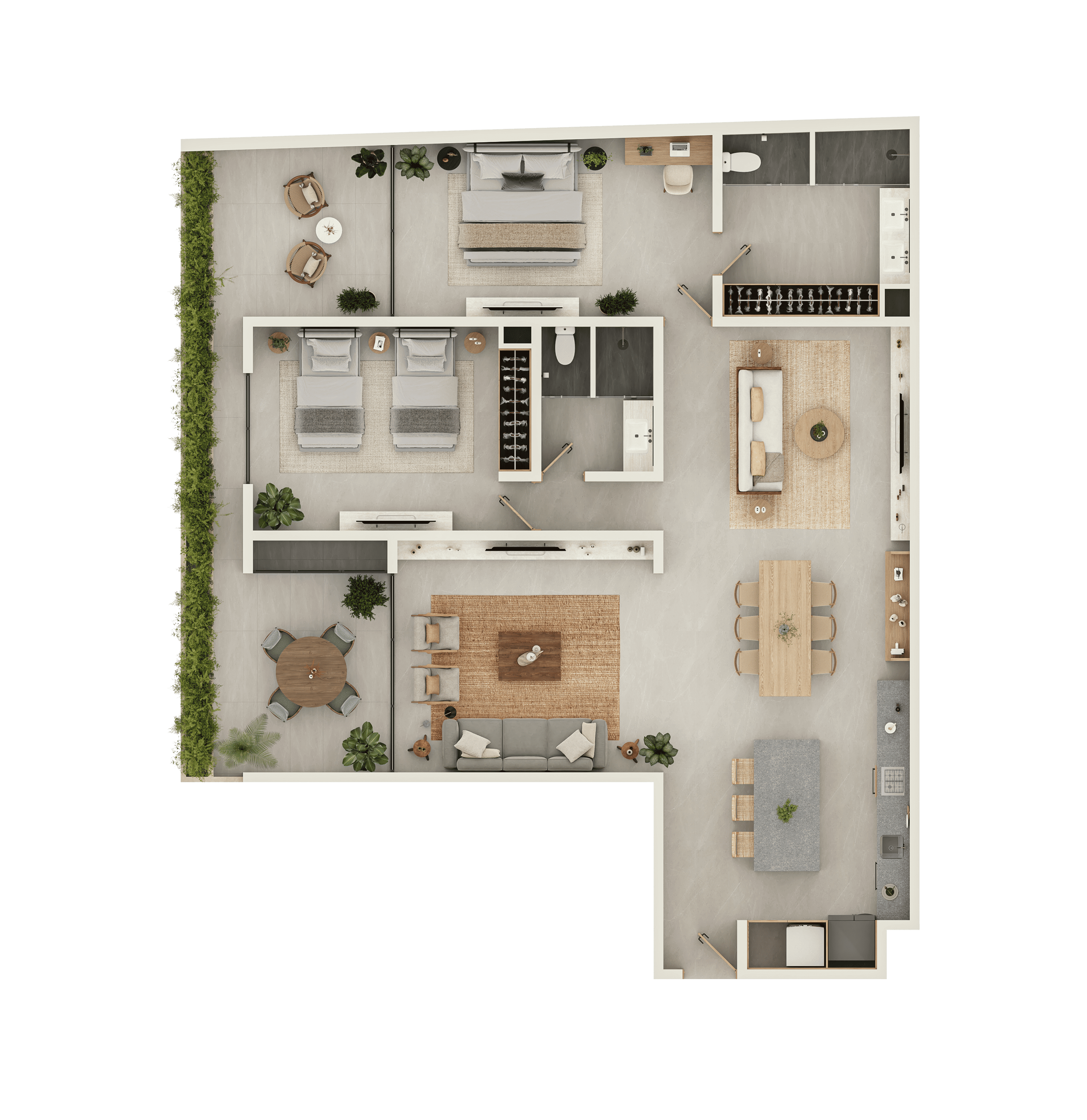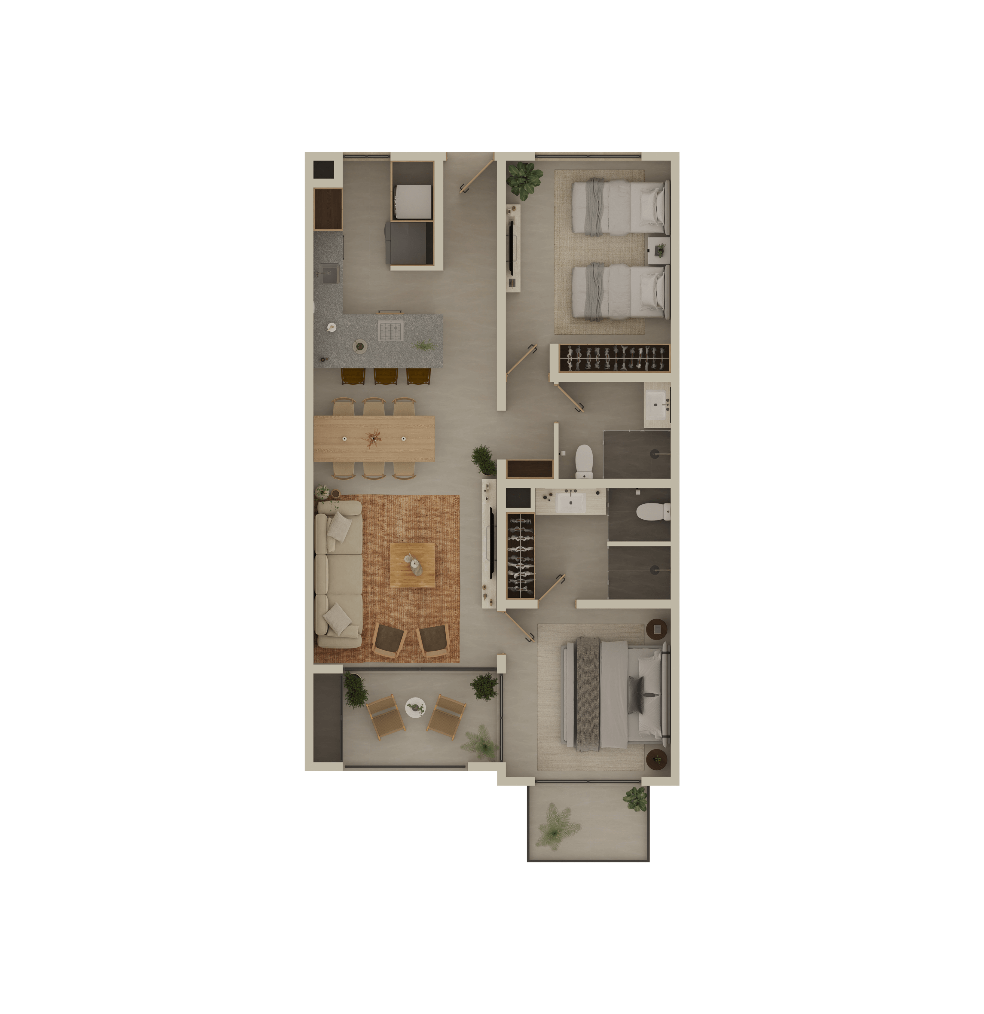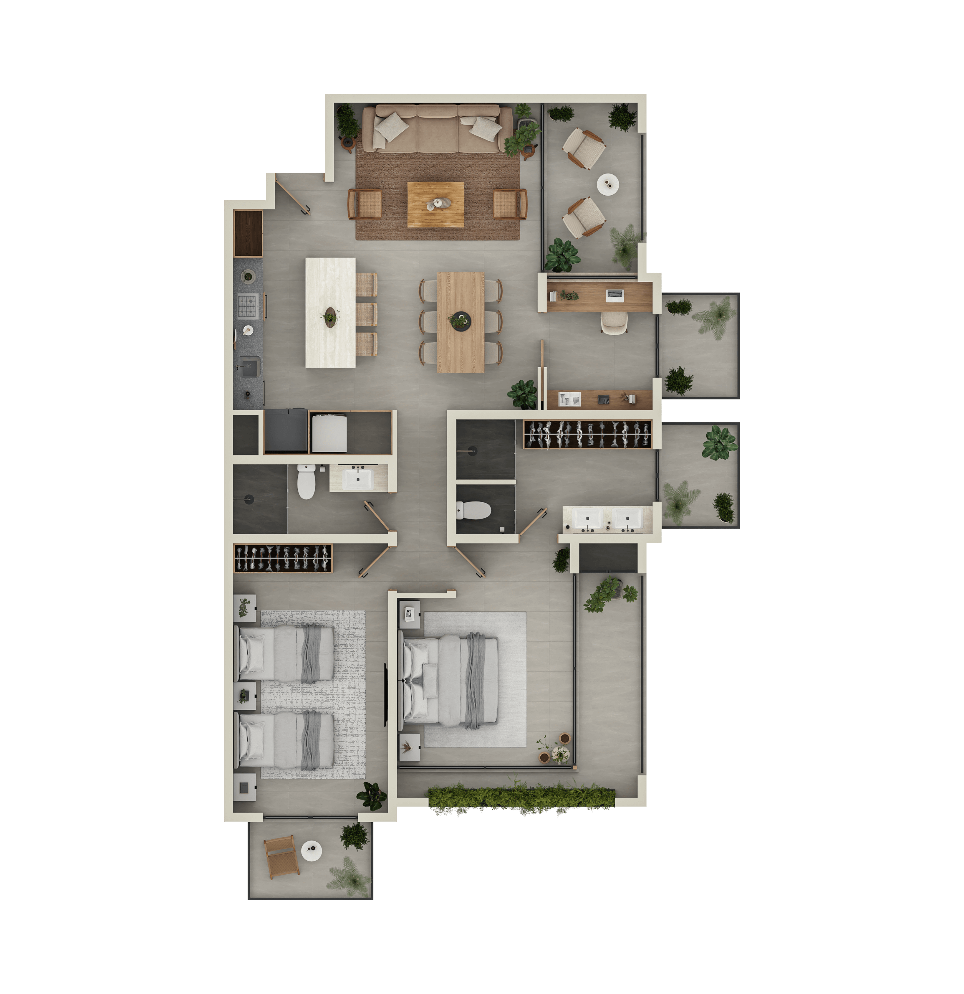 Our apartments offer options ranging from 1 to 3 bedrooms, with areas up to 247 m² —some featuring Garden Houses, Mezzanines, and Penthouses with private rooftops.